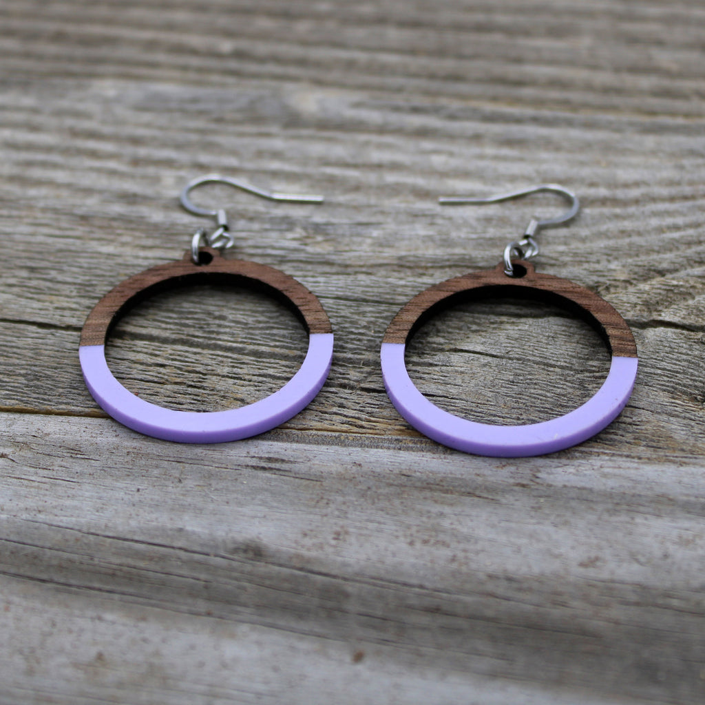 Wooden Hoop Earrings with Purple Pastel Accent/Colorful Earrings/Spring Earrings/Bridesmaid Earrings/Lightweight Earrings